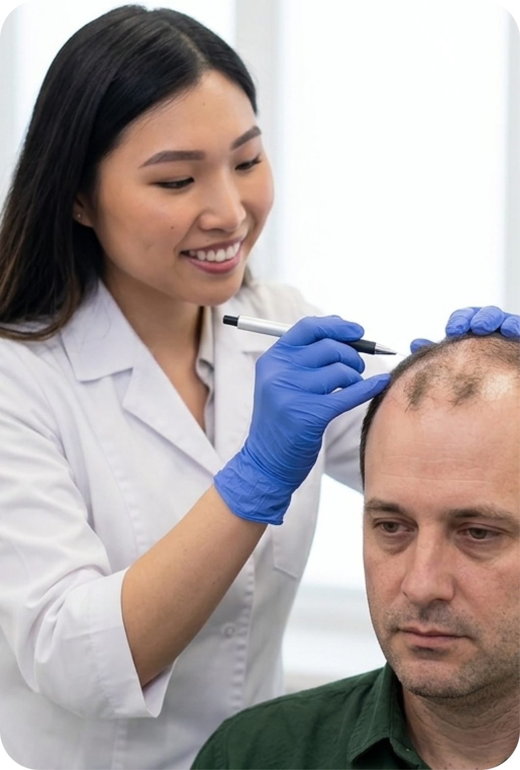 Throughout the day, you’ll have opportunities for breaks, stretching, snacks, and rest. Many patients watch shows, listen to music, or relax during the procedure. Comfort and pacing matter, especially in longer cases, so the workflow is organized to keep grafts protected and hydrated while also keeping you comfortable. Before you leave, we review aftercare step-by-step, provide written instructions and supplies, and schedule follow-ups so you feel supported through every healing phase.